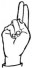 На ћирилици написано АЛЕН БИБЕР састоји се из 9 слова [?]. Исписано ћириличном једноручном азбуком за глувонеме: